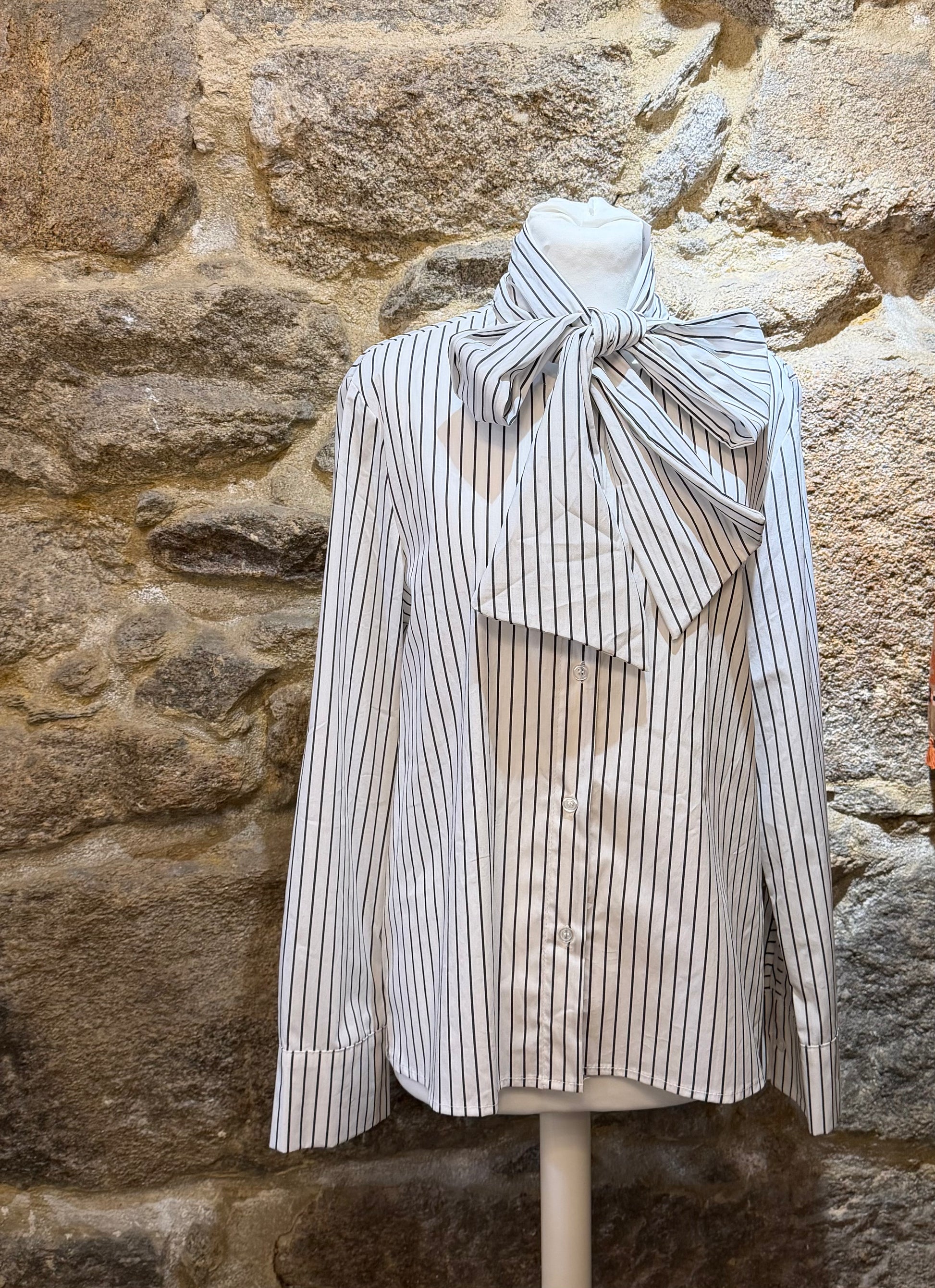 Camisa de rayas negras y con lazada